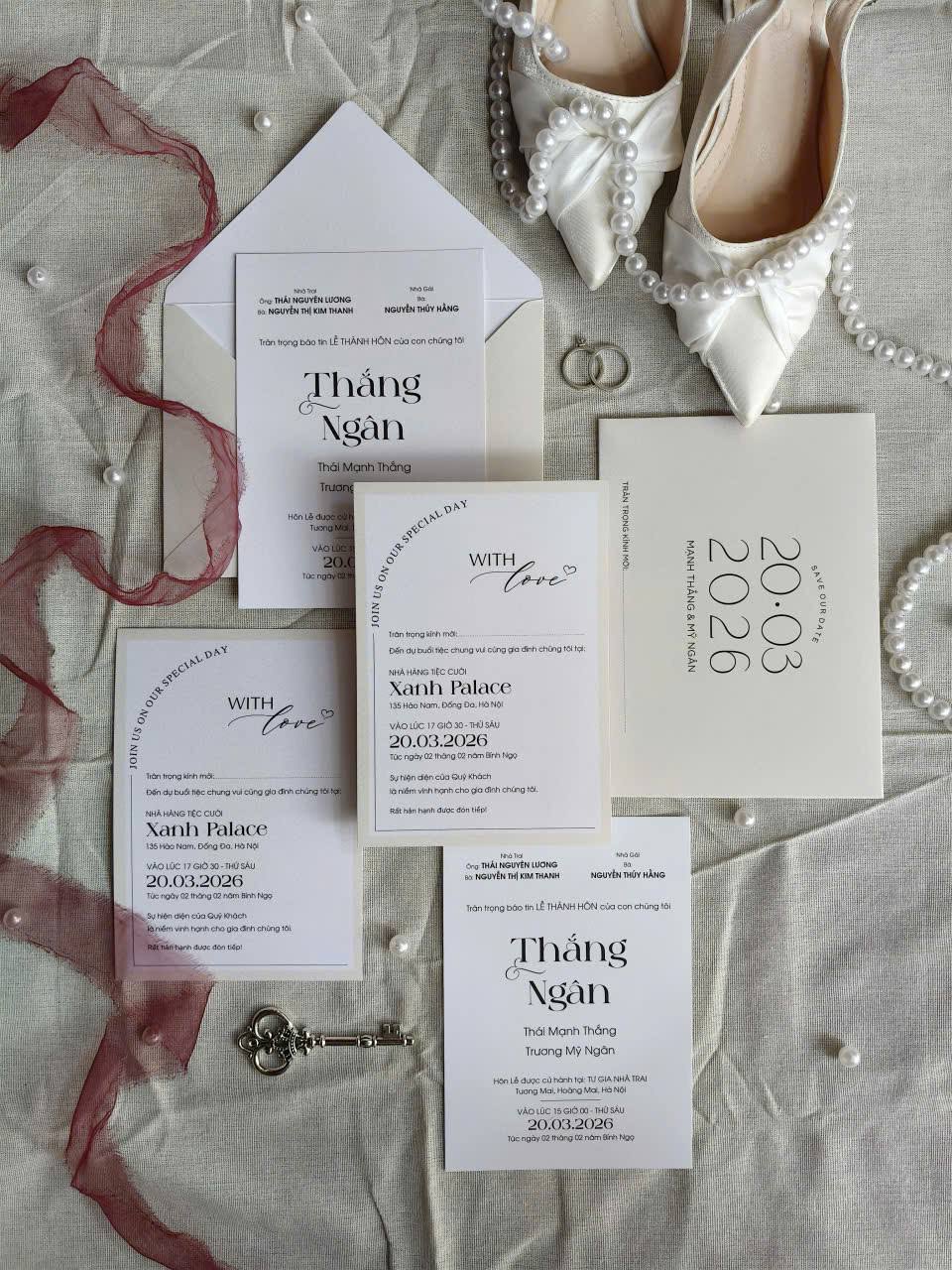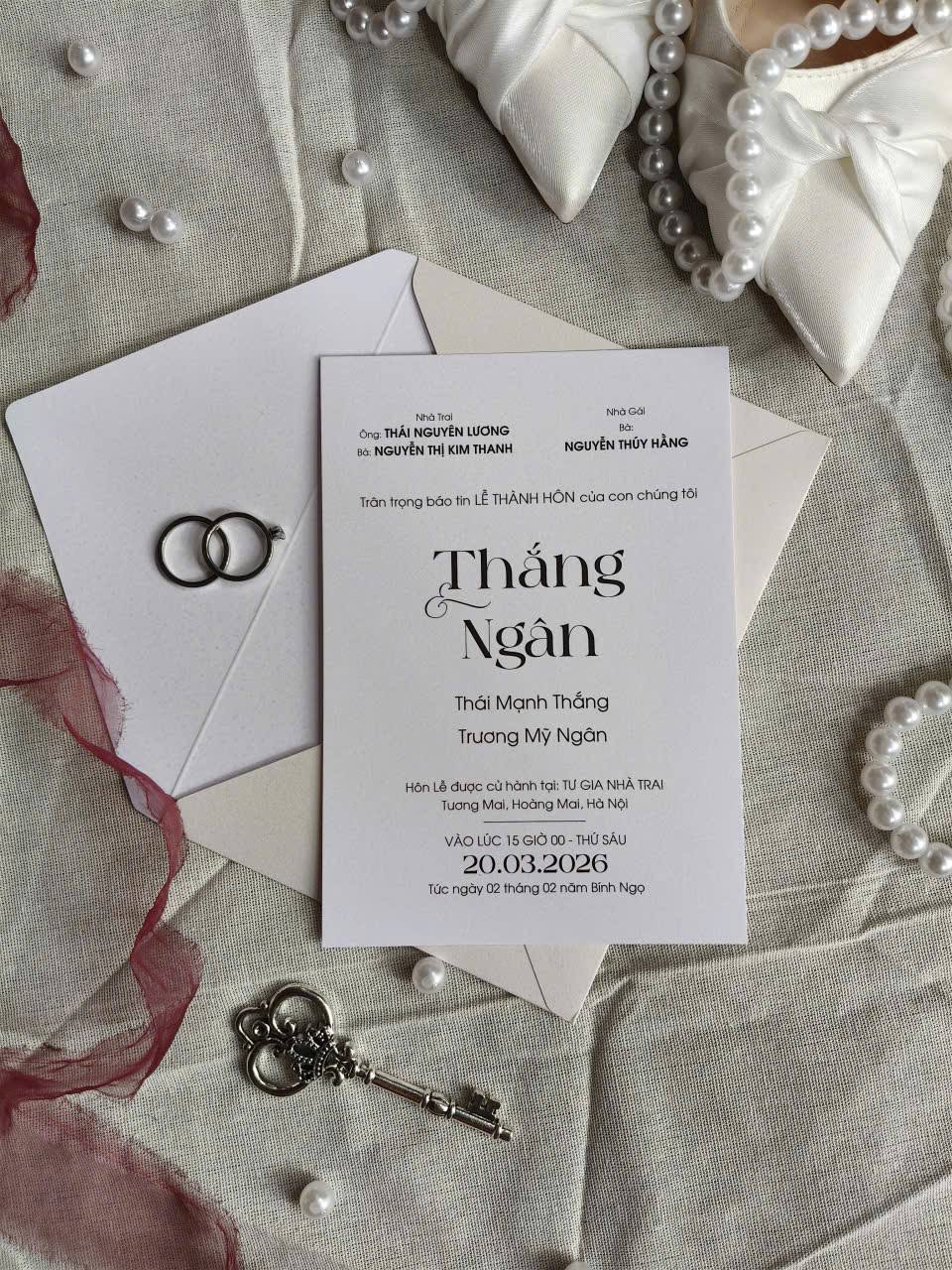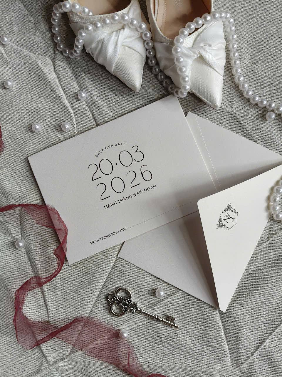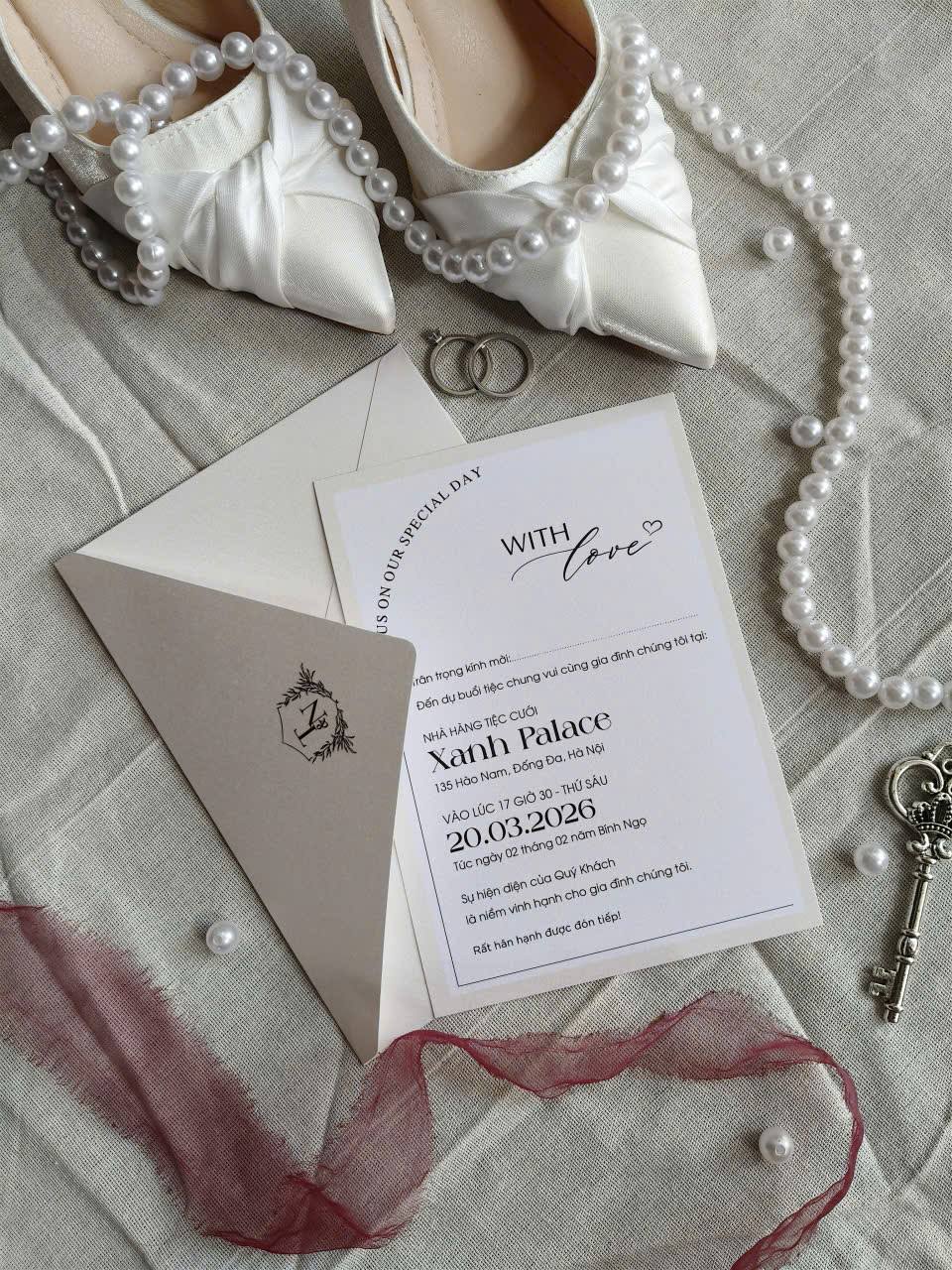 Thiệp nổi bật với gam màu trung tính nhẹ nhàng, kết hợp hài hòa giữa font chữ mềm mại và nét chữ rõ ràng, tạo nên tổng thể cân đối, trang nhã. Phong cách tối giản nhưng không đơn điệu, từng chi tiết được chăm chút kỹ lưỡng để mang đến một thiết kế vừa hiện đại vừa mang giá trị bền vững theo thời gian. Đây là lựa chọn lý tưởng cho những cặp đôi yêu thích sự thanh lịch và tinh tế.