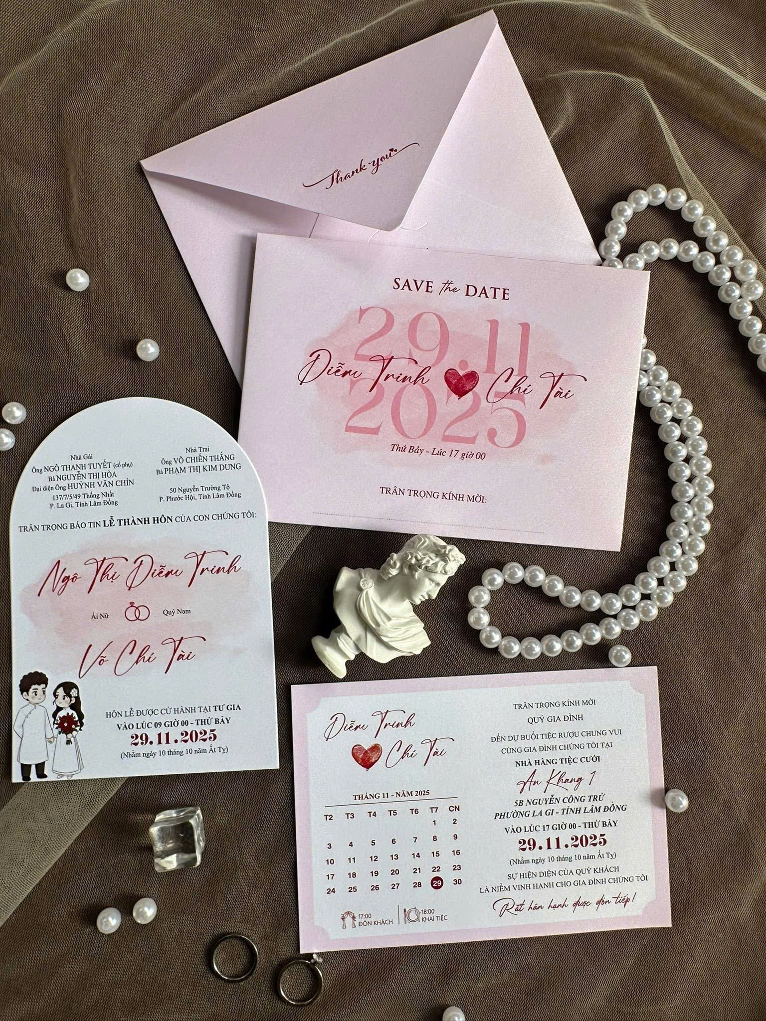 - THIỆP CƯỚI "HỒNG DUYÊN NẮNG ẤM" – NÉT TINH TẾ GẮN KẾT TÌNH YÊU VĨNH CỬU Mô tả ngắn: Mẫu thiệp cưới "Hồng Duyên Nắng Ấm" mang vẻ đẹp lãng mạn với tông màu hồng pastel dịu nhẹ, thiết kế bo tròn độc đáo và họa tiết minh họa tinh tế, là lựa chọn hoàn hảo cho ngày trọng đại của bạn.