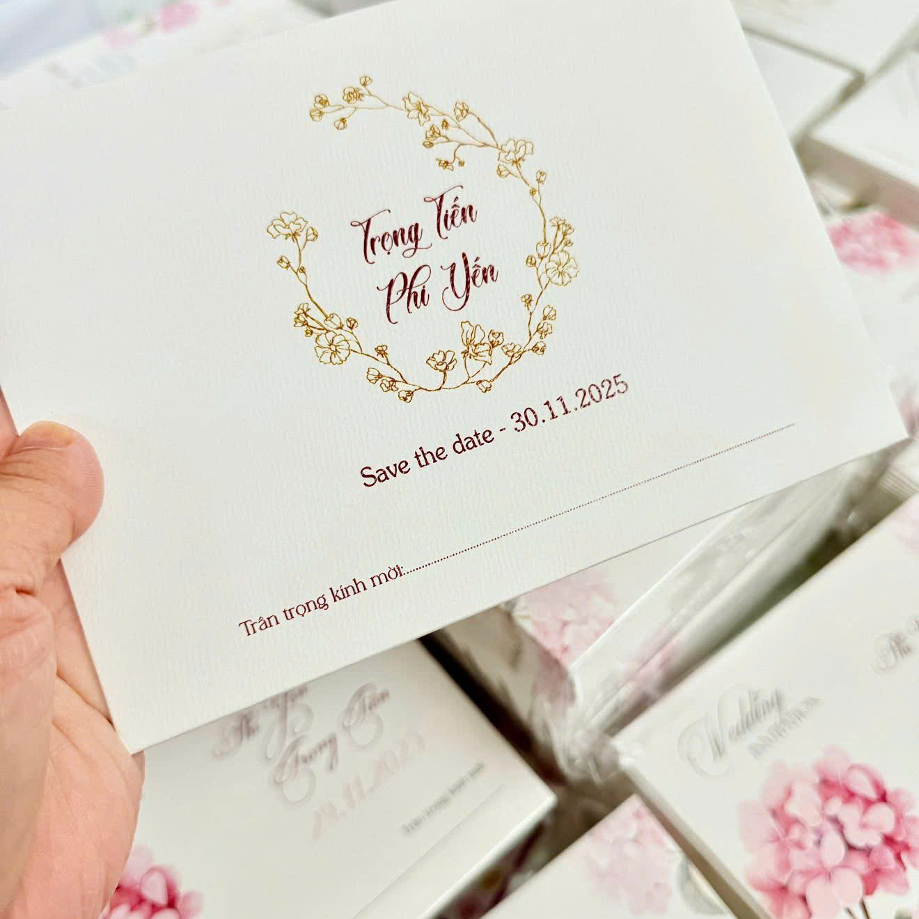 - THIỆP CƯỚI "VÒNG HOA DỊU DÀNG" – TINH HOA CỦA SỰ THANH LỊCH Thiệp cưới "Vòng Hoa Dịu Dàng" là sự kết hợp hoàn hảo giữa nét cổ điển và hiện đại, mang đến vẻ đẹp tinh khôi, sang trọng cho ngày trọng đại của bạn. Thiết kế tinh xảo với họa tiết vòng hoa vẽ tay cùng tông màu nâu trầm ấm áp, tượng trưng cho tình yêu bền vững và hạnh phúc vẹn tròn.