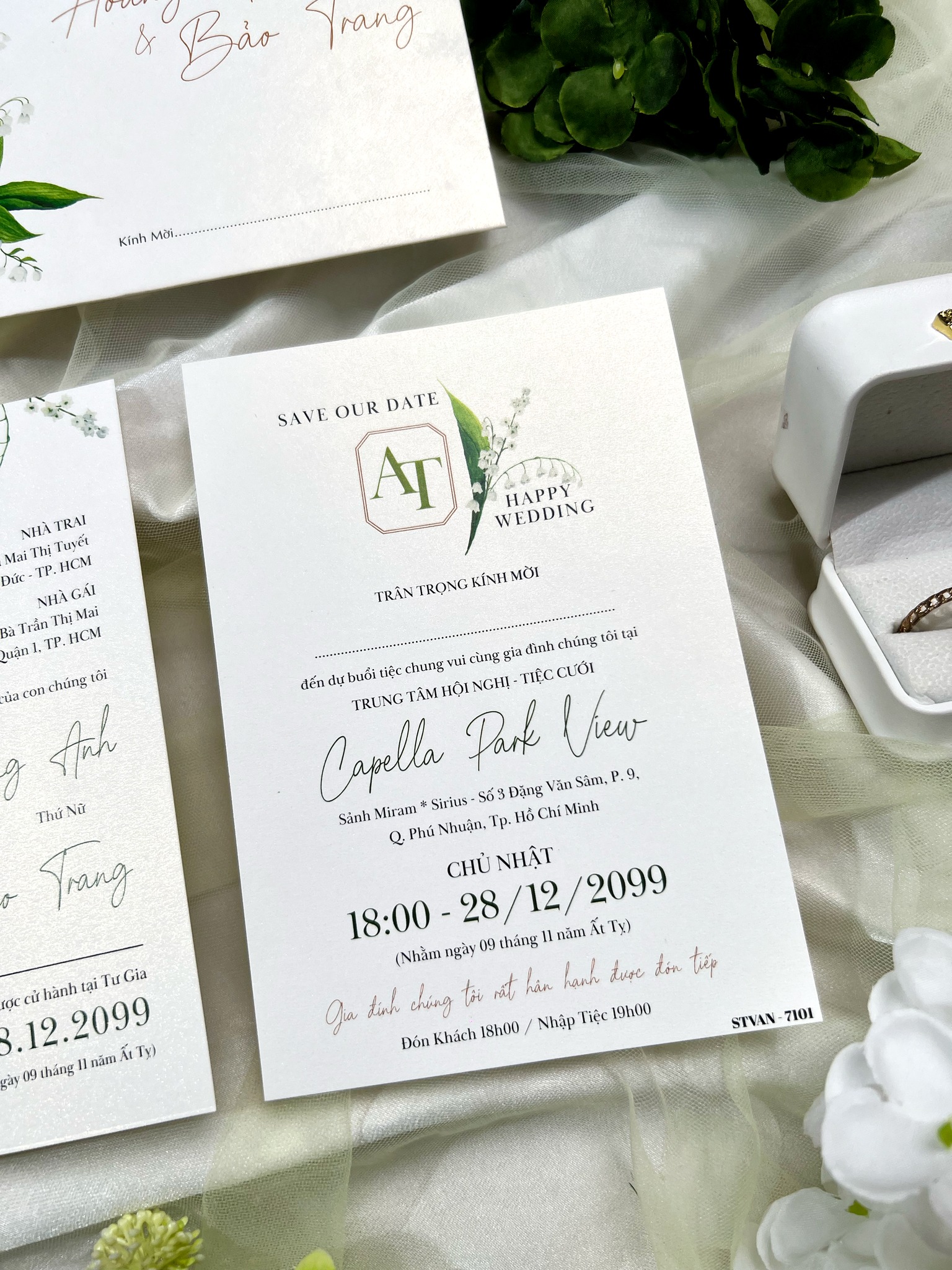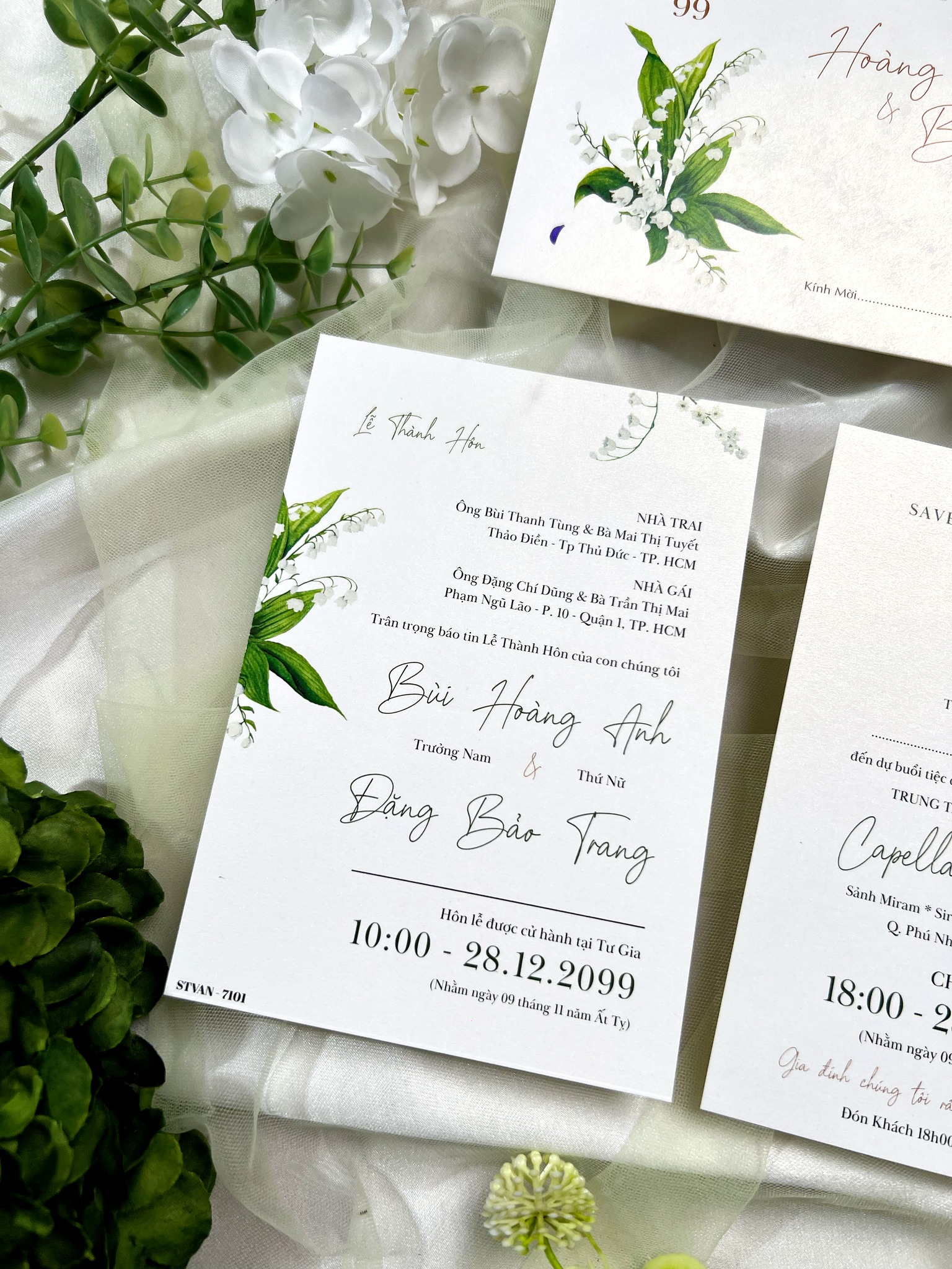 - Thiệp cưới Hoa Linh Lan là sự kết hợp hoàn hảo giữa nét hiện đại và tinh tế. Lấy cảm hứng từ loài hoa linh lan trắng – biểu tượng của hạnh phúc vĩnh cửu, mẫu thiệp mang đến cảm giác trong trẻo, thanh khiết và tràn đầy yêu thương.