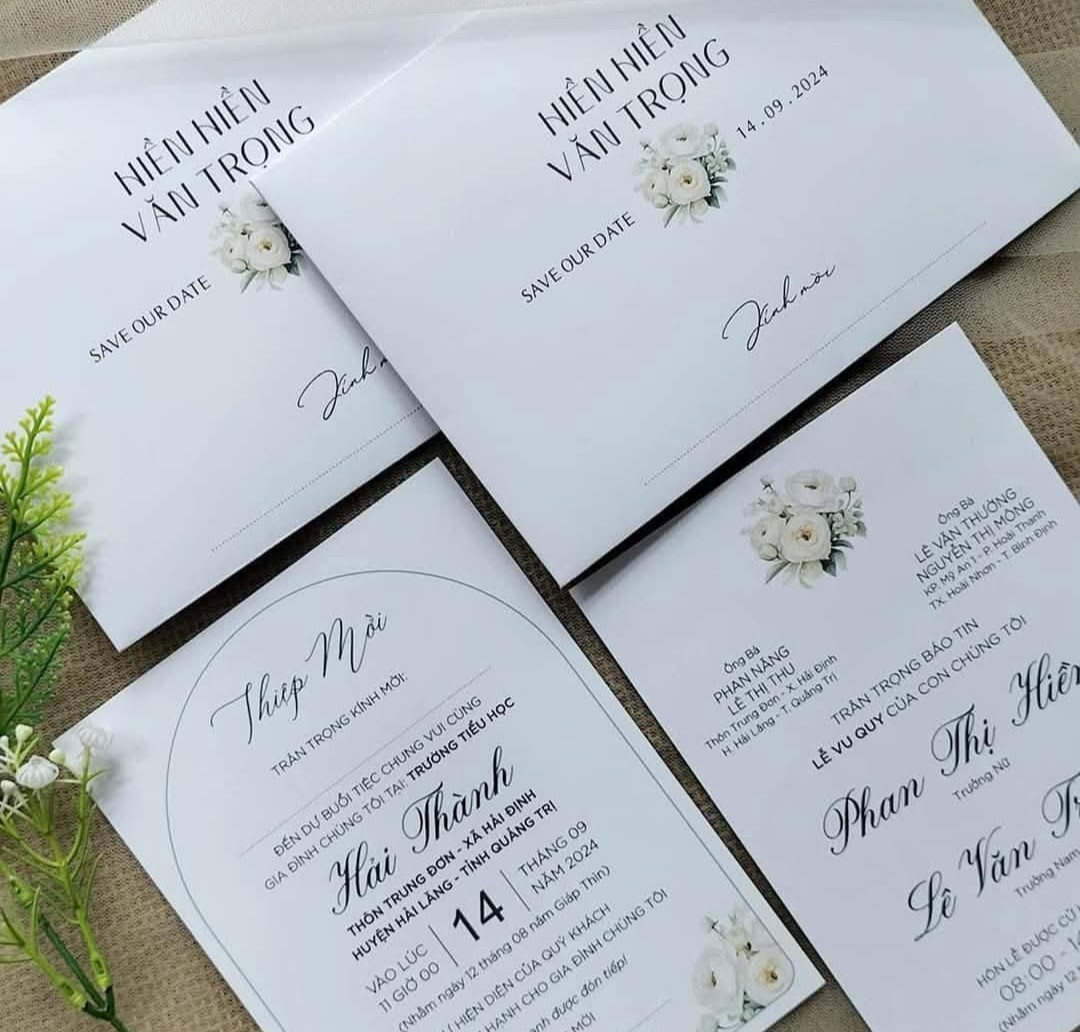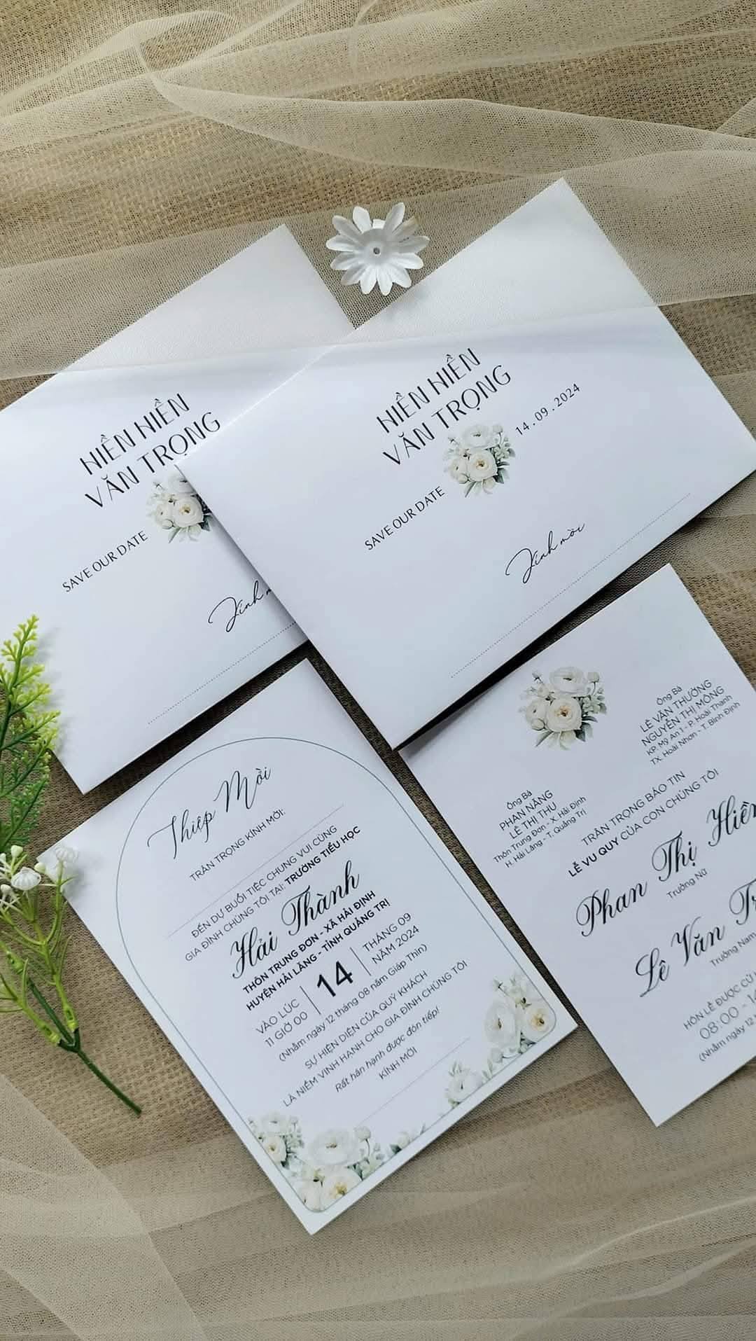* Đặt 300 thiệp: Tặng thêm 100 thiệp nhóm họ trang trọng và một website cưới online hoàn chỉnh.