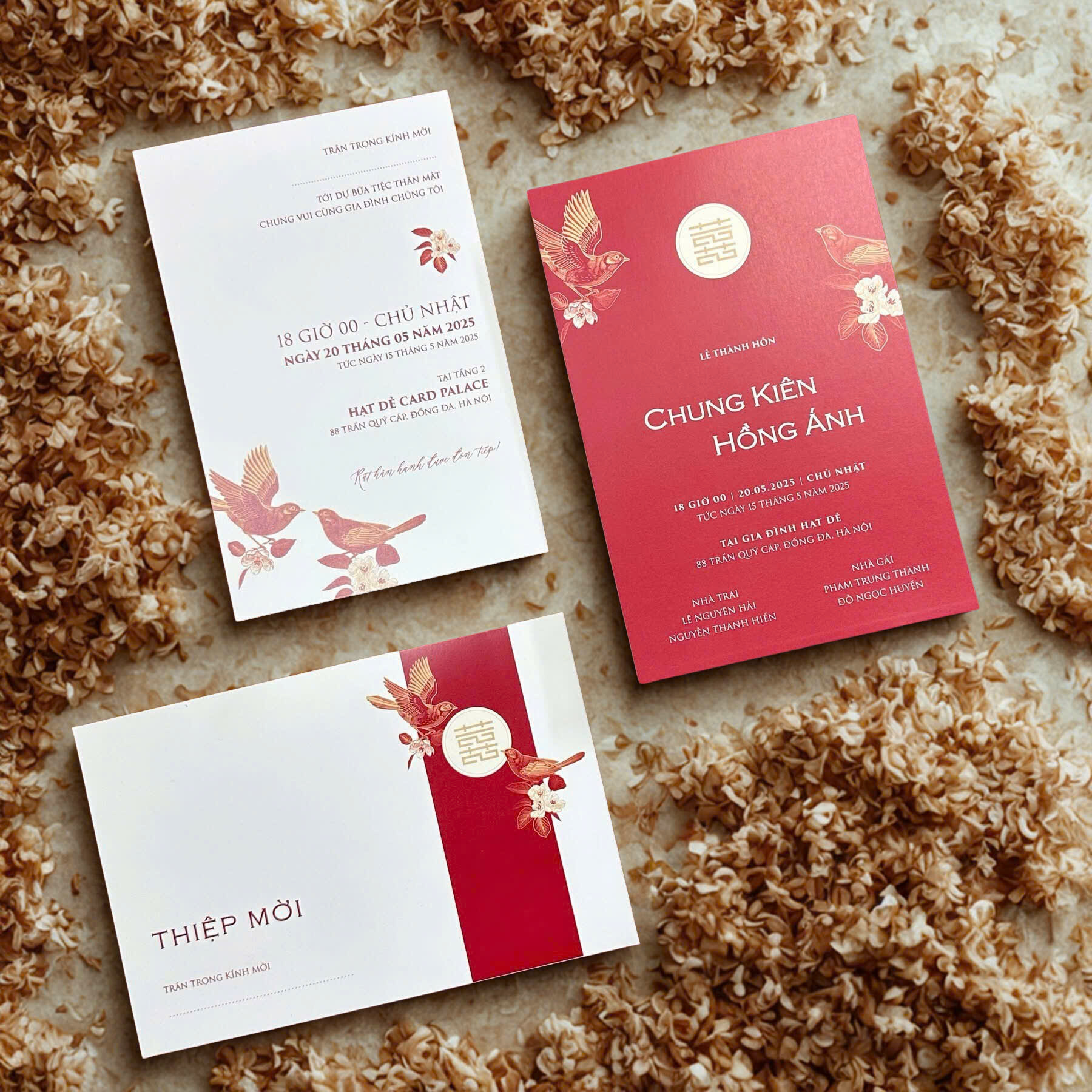 - ORIENTAL BLISS: SẮC ĐỎ THỊNH VƯỢNG – THIẾP CƯỚI TRUYỀN THỐNG KẾT HỢP TINH HOA HIỆN ĐẠI Thiệp cưới Oriental Bliss mang màu Đỏ Gạch trang trọng, tượng trưng cho may mắn và thịnh vượng. Thiết kế kết hợp hài hòa giữa biểu tượng Song Hỷ truyền thống, họa tiết Chim Ép Kim và bố cục hiện đại, là lựa chọn chuyên nghiệp, tinh tế cho cặp đôi yêu thích nét đẹp văn hóa Đông Phương.